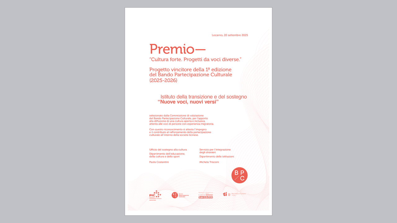 L’Istituto della transizione e del sostegno premiato dal Bando Partecipazione Culturale 2025–2026 per il progetto “Nuove voci, nuovi versi”.