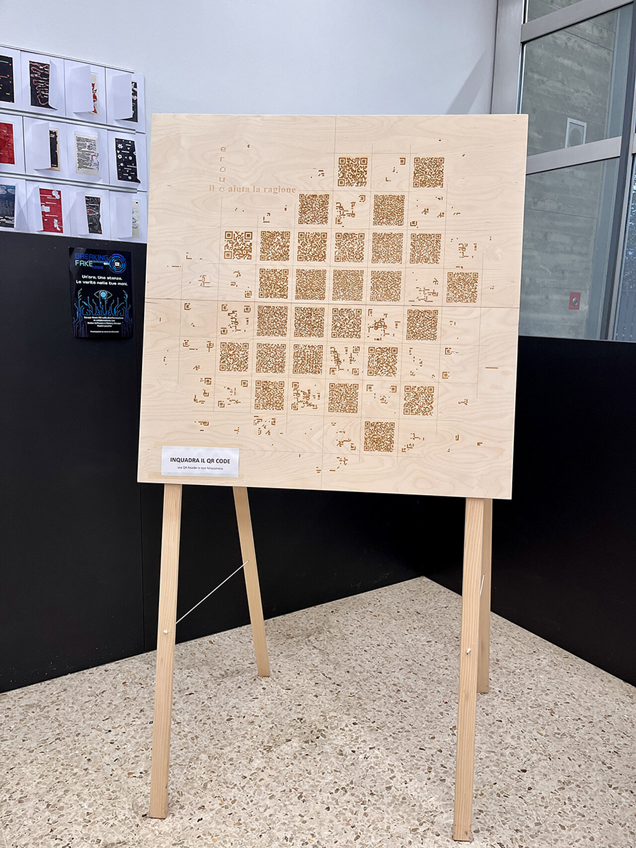 Gli allievi hanno realizzato, presso il Laboratorio di artigianato digitale (LAD) di Bellinzona, un pannello espositivo composto da messaggi contro il razzismo trasformati in QR code, espressione di un percorso di riflessione e rielaborazione personale.